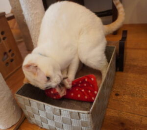 めいめいちゃん、マタタビに酔っ払って、床でスリスリ![]()