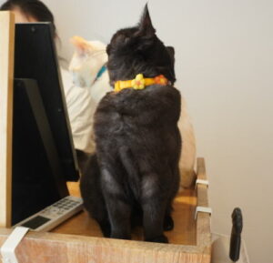 ※お客さまがお帰りの時に、カウンターでお見送りする、にゃんこ