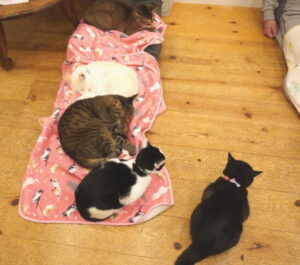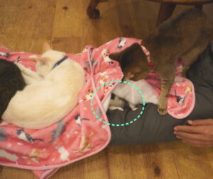 お膝に4にゃん乗りです![]()
