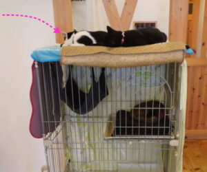 ケージの上は、エアコンの風がくる、ヌクヌクスポットアップ