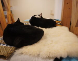 もっとヌクヌクにしようと、ムートン座布団を置いてみました音譜