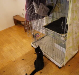 ケージの前で、順番待ちする、めいめいちゃん![]()