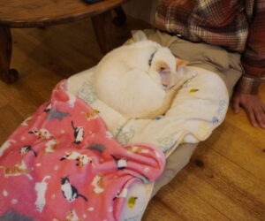 女王・継ちゃんの定位置のお膝に落ち着きました![]()