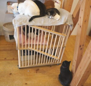 ケージの上で、4にゃん猫団子![]()