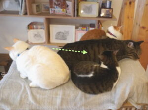 4にゃん団子では、場所取りが激しいのでした![]()