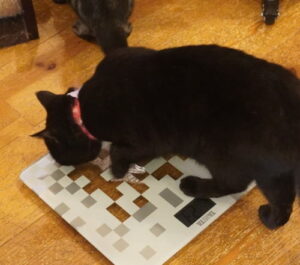 体重計にお膝掛けを敷いたら、潜った、ぶんじろう爆  笑