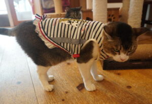縞店長のお洋服がなくなったと思って、心配のようですショボーン