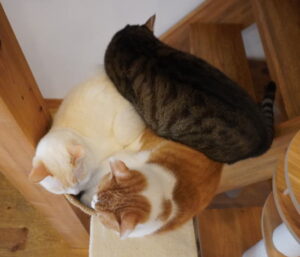 カゴは、秀ちゃん&良ちゃんの猫団子でいっぱい![]()