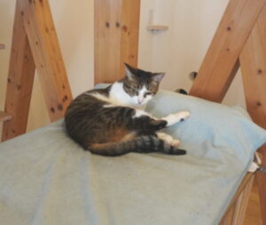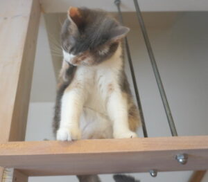 階段横の猫棚に乗ってる、ゆうゆうちゃん![]()