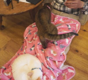 お膝掛けをめくってみたら、たろちゃんがいました![]()