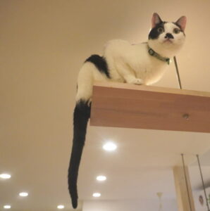 階段横の猫棚に乗る、ハンゾウくん![]()
