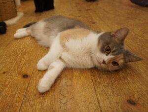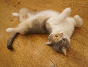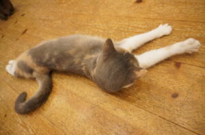 めいめいちゃん、マタタビに酔っ払って、床でスリスリ