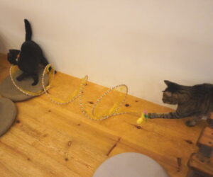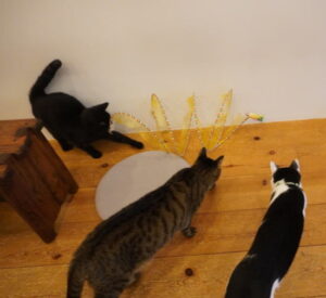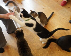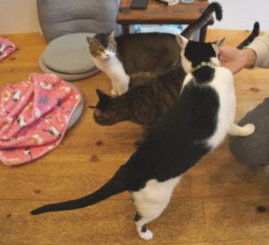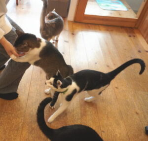 さっそく群がる、にゃんず