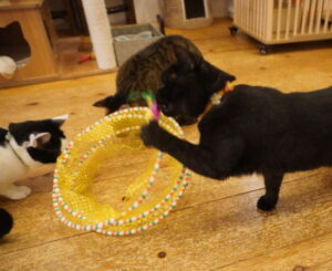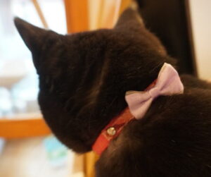 縞店長の首輪、おリボンが取れてしまいました