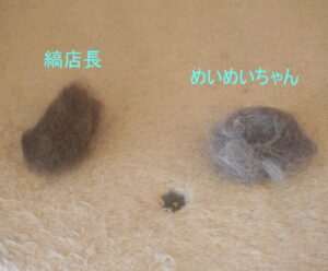 縞店長のブラッシング後と毛玉と比較すると、