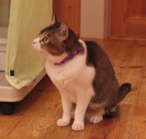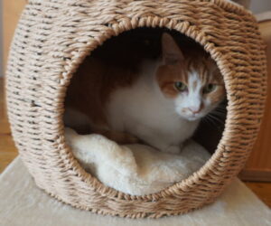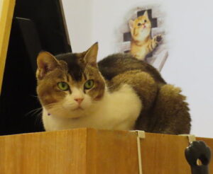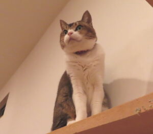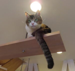 階段横の猫棚に乗ってる、ゆうゆうちゃん