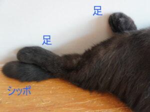 あーちゃんのピンク&黒の肉球がチラッと見えるアンヨ