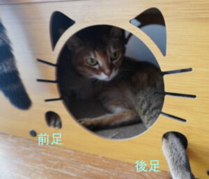 箱の隅に入っているけど、足は見えるようにしているのは、