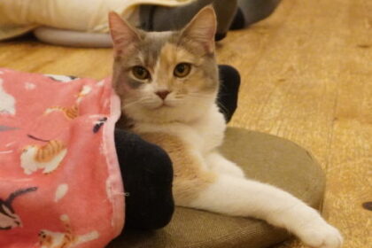 アッ、たろちゃんの長い爪がシュシュに引っ掛かりました