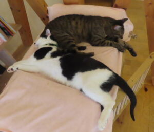 床では涼んでノビノビ、風太には縮んでベッタリ。