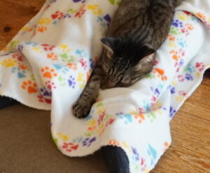 たろちゃんは、お膝掛けに潜ってます