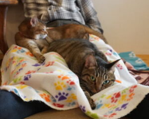 こっちでは、いつものにゃんずお膝乗り