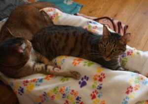 カゴに、秀ちゃん&良ちゃんのいつもの猫団子